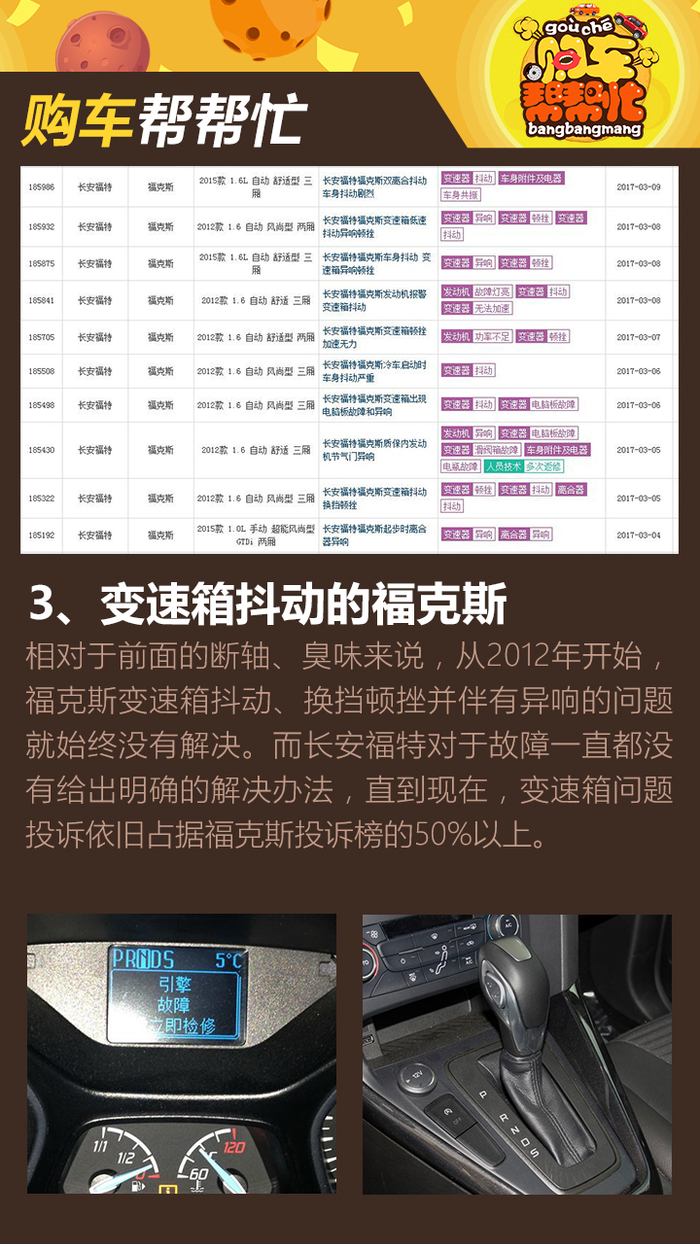 福克斯变速箱的问题由来已久,从2012款集中爆发,到现款车型的双离合变速箱,问题依旧没有得到很好的解决,虽然这套变速箱的生命周期已属于末期,但如何让老车主用的放心,长安福特需要好好想想才行,毕竟这不是个案!