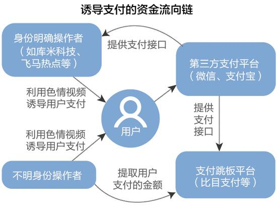 《消费者报道》调查发现,涉黄诱导支付平台主要有两种资金流转方式,一种是用户通过微信、支付宝等第三方平台汇款给身份明确的诱导支付操作者。