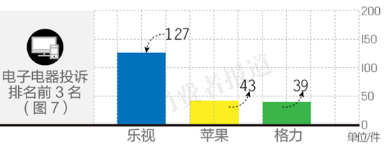 电子电器行业的投诉主要集中在手机和家用电器。其在,乐视手机遭多人投诉,售后服务问题诸如申请官方售后维修时,难以得到及时的服务,配件至少需要等待两个月。苹果手机的自动关机依然存在。格力、海尔等家用电器的投诉则主要集中在感恩答谢会的营销骗局。(如图7,8)