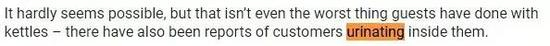 报道中还透露,有些道德败坏的人还会在酒店热水壶里撒尿。