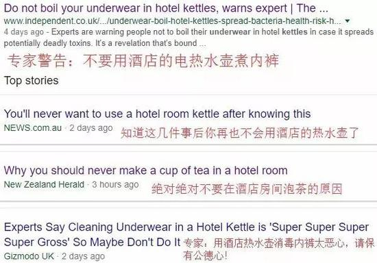 搜了下,早在去年,国内曾有酒店业爆料“住客用热水壶煮内裤消毒”。