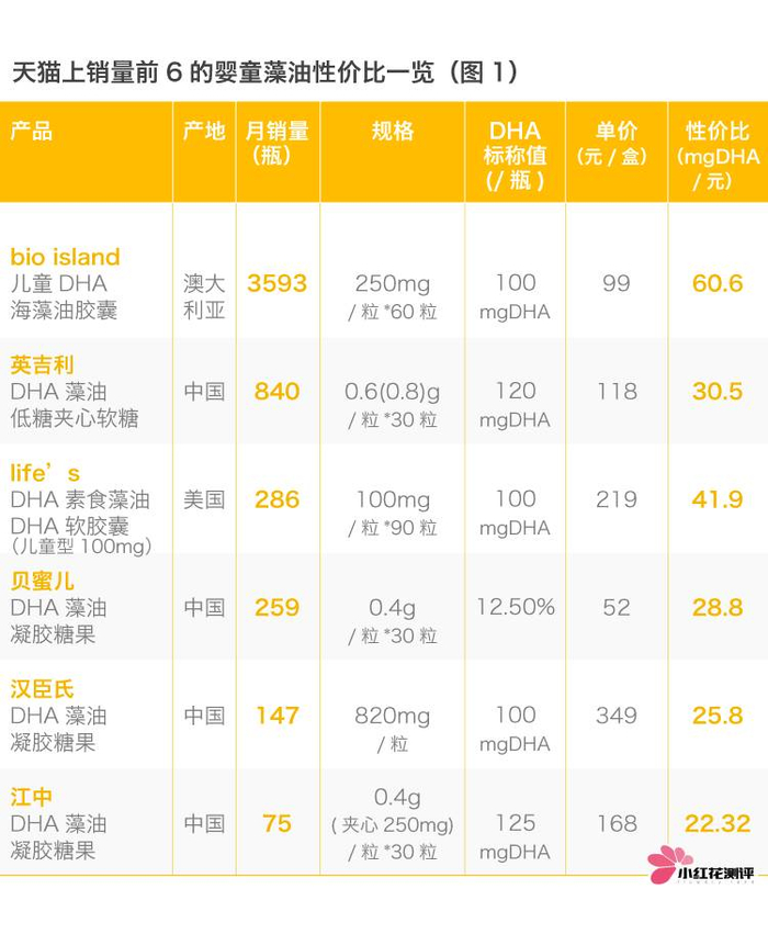 第一:DHA含量,从产品成分列表中就能轻易分辨。