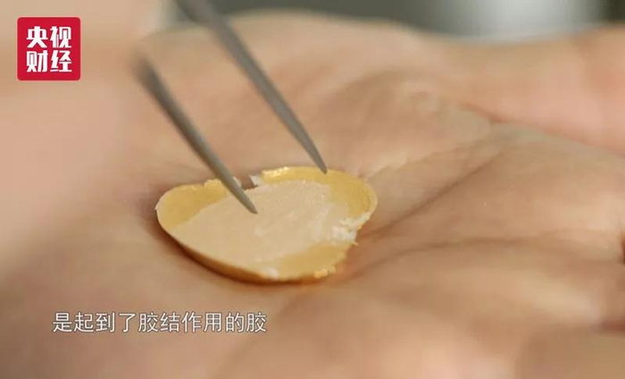 中国地质大学(北京)珠宝学院副院长 郭颖:“像这样的和田玉,实际上在整个和田玉质量里应该是垫底的,质量是最差的那种和田玉。金虽然是纯度很高,但只有薄薄的一层的金箔,而中间那一大块,透明的无色的,是起到了胶结作用的胶,而更重要的是,它充填了金箔与底下基底的和田玉之间的空隙,再加上它这样的成品,基本上没有任何的工艺附加值,也没有什么设计、创意的附加值,所以它在市场的价格应该是不高的。”