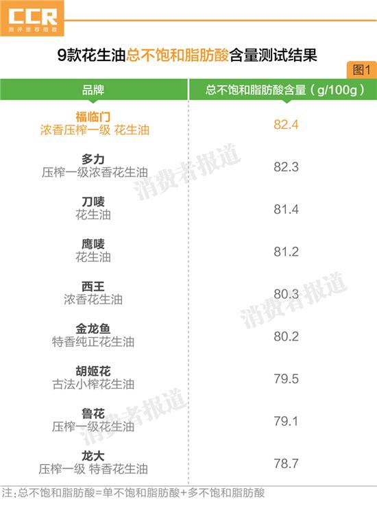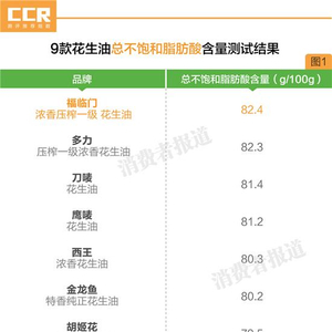 2017年11月,《消费者报道》向权威第三检测机构送检了鲁花、福临门、金龙鱼、胡姬花、多力、鹰唛、刀唛、西王、龙大等9款价格差异较大的一级压榨型花生油。