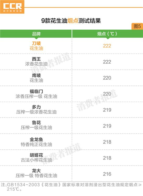 刀唛、西王花生油烟点最高,龙大最低