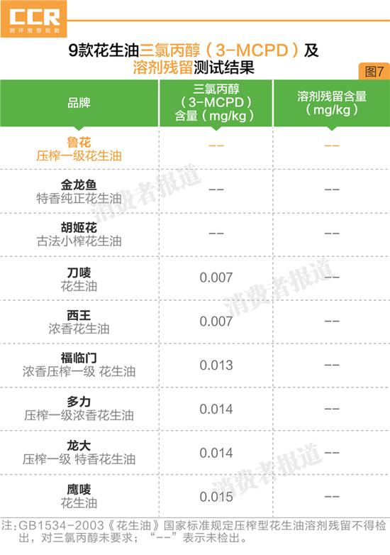 不过,本刊仍建议消费者在选购时优先购买不含3-MCPD的花生油产品,如鲁花、金龙鱼、胡姬花。