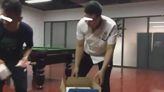 4. 回收糕点被一名穿着鲍师傅工作服的男子统一打包,回店铺售卖。