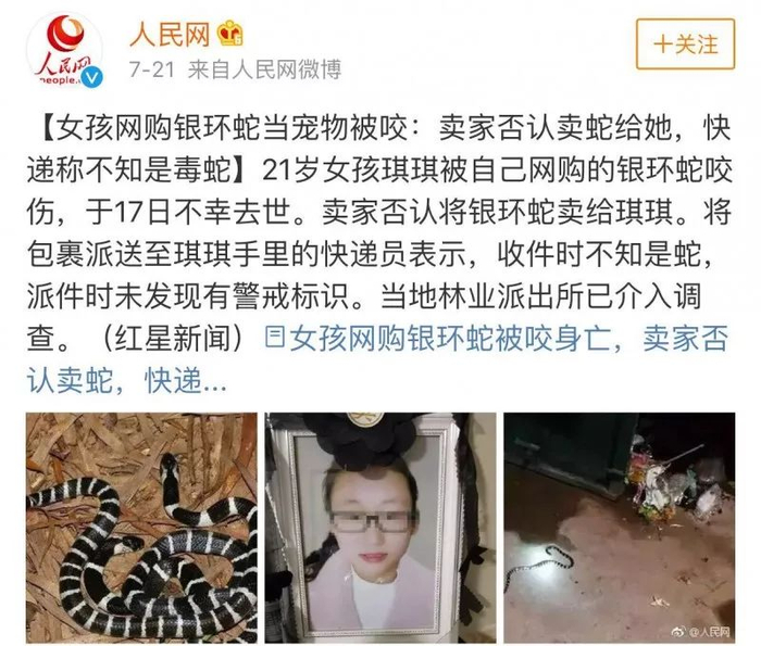 记者调查:女孩网购银环蛇被咬身亡 网上仍在售卖活体动物