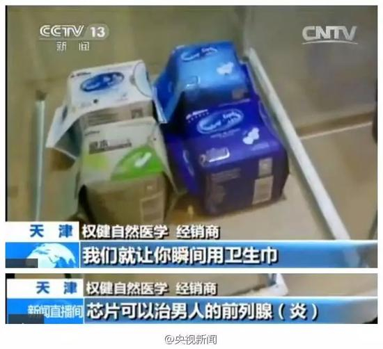 2014年12月14日,央视新闻频道曝光了权健旗下的明星产品“骨正基鞋垫”、“负离子磁卫生巾”涉嫌虚假宣传。在记者隐藏拍摄的视频中,权健的经销商宣称,鞋垫可以治疗心脏病,卫生巾能治疗男性的前列腺炎。