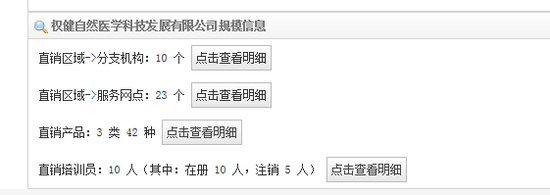 商务部直销行业管理网站显示,权健的直销区域包括10个分支机构和23个服务网点。