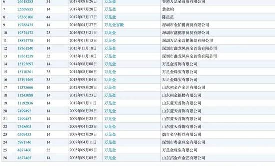 众所周知,作为黄金首饰行业通称的“万足金”,已经公认是黄金纯度及品质的直接象征,在2007年至2017年间,也曾被深圳、江苏、山东等地多家首饰企业或个人以14类商标(含贵重金属、珠宝首饰、宝石等)作为商标名称密集申请注册,皆被商标评审委员会驳回。记者查阅《中国商标网》,粗略统计此类商标约14个,都处于“无效”状态。