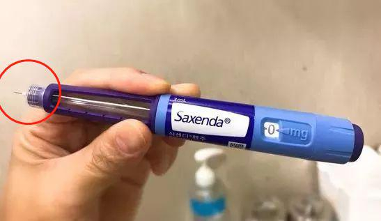 网红减肥药Saxenda,因外形酷似圆珠笔又被称为“减肥笔”。打开“笔盖”,你可以看到减肥笔的一次性针头。根据微商的说法,这种减肥药“不走胃”,可以选择腹部、大腿或上臂等部位进行皮下注射。