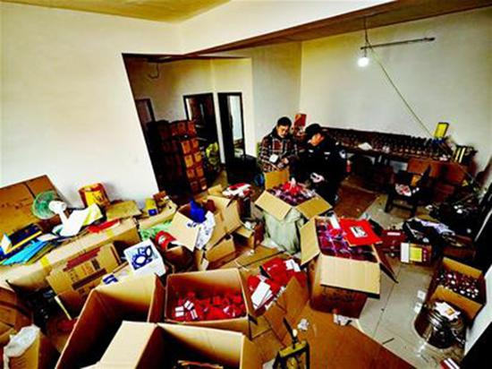 今年1月16日上午10时,长航公安黄石分局组织警力,联合黄石市食药监局执法人员,突袭了这家烟酒销售行与仓库。现场查获假冒伪劣“茅台”“五粮液”等白酒100余件,抓获该烟酒销售行店长王某。