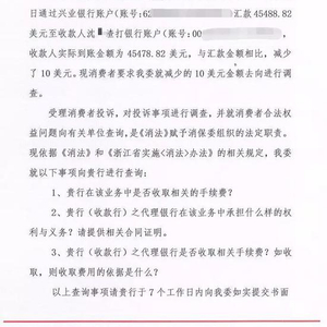 离奇!消费者境内汇款少了10美元 浙江消保委支持将两家银行告上法院!