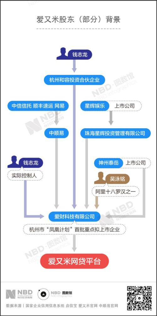 据国家企业信用信息系统资料,爱财科技有限公司成立于2014年03月18日,注册资金3.64亿人民币。另据启信宝显示,爱财科技实际控制人及法定代表人均为钱志龙, 自然人股东有吴泳铭(阿里十八罗汉之一)、钱志龙等人,法人股东有神州泰岳以及星辉娱乐的全资子公司珠海星辉投资管理有限公司、钱志龙实控的杭州和容投资合伙企业(有限合伙)等。