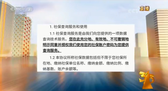 晚会曝光社保掌上通App通过不平等、不合理条款强制索取用户隐私权、过度用权。用户在填写各种资料注册该App后,电脑远程就能截取到用户的几乎所有信息。