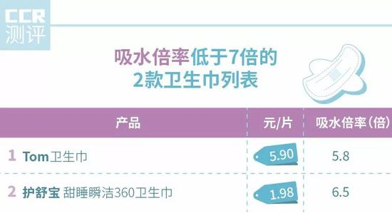 相对不推荐Tom、护舒宝,这两款产品吸水倍率不符国标要求,属不达标产品!
