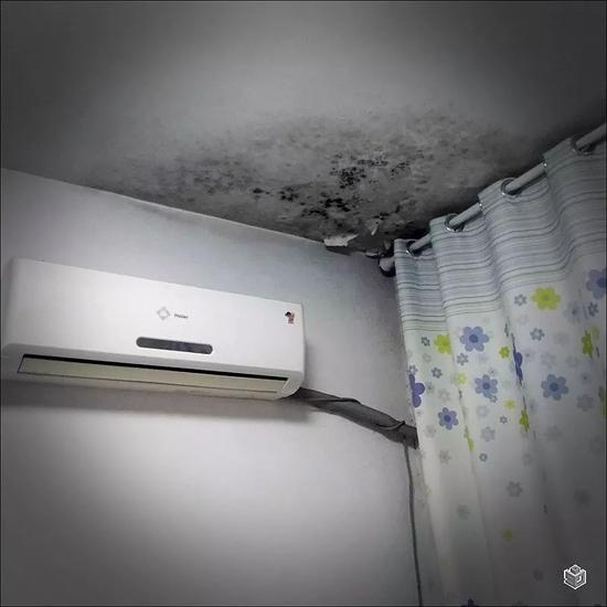 更糟心的是,李大妈自己房子墙皮脱落侧小屋的墙体,从刷好漆后就开始出现凹凸不平、下雨后渗水等问题。李大妈反应两次,认为是外部墙体施工偷工减料导致屋内墙体不隔潮,但物业都是来家里拍了照片便再无音信。