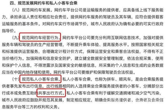 杭州市交通运输局向记者出示了相关文件。杭州市在2016年和2018年分别出台了两版《杭州市网络预约出租汽车经营服务管理实施细则》,记者比对发现,这一细则基本承袭了上述国务院和七部委的两份文件,根据地方管理要求有调整。不过前后两版细则均明文规定:私人小客车合乘不属于道路经营运输范畴。