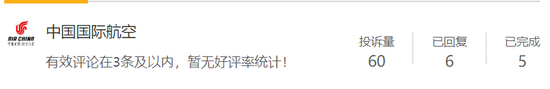 目前中国国际航空仅完整完成5项投诉内容处理。