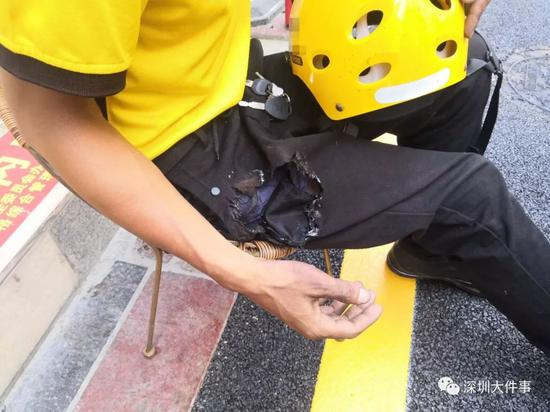 6月14日中午13时许,深圳一外卖小哥送完外卖下楼后,裤袋里的充电宝突然发生爆炸。裤子被炸出一个大洞,大腿被炸伤。