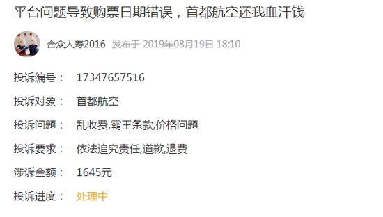 飞机故障致延误造成经济损失谁负责?首都航空被投诉