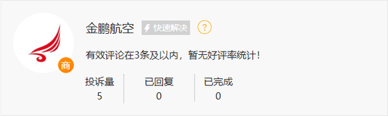 截至目前,在此次评选联合主办方黑猫投诉平台上,金鹏航空投诉量为5件,暂无回复。