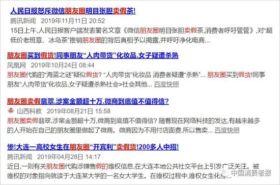 记者在网上搜索也发现,近年来朋友圈卖假货的新闻被媒体频繁爆出。