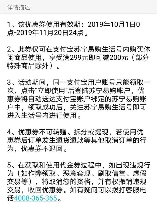 “我在电话里提出了优惠券不能使用的问题,客服跟我说,他们认为,优惠券上写的日期是11月20日24点,等于就是20日的0点。”林宛告诉《中国消费者报》记者,当时她询问客服,这是不是可以代表苏宁易购的说法,对方说当然可以,因为这是苏宁总部的电话。