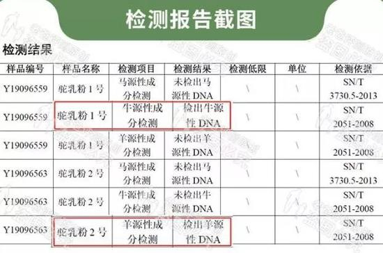 检测结果显示,一罐驼奶粉掺了牛奶,一罐驼奶粉掺了羊奶。