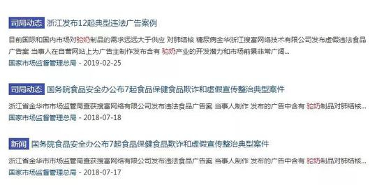 其实,早在2018年、2019年,我国市场监督管理总局曾通报过功效“神乎其神”的骆驼奶。