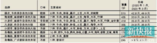 记者在电商平台上购买知名度较高的德庄、海底捞、自嗨锅、小龙坎、大龙燚、小肥羊的自热食品进行测评。