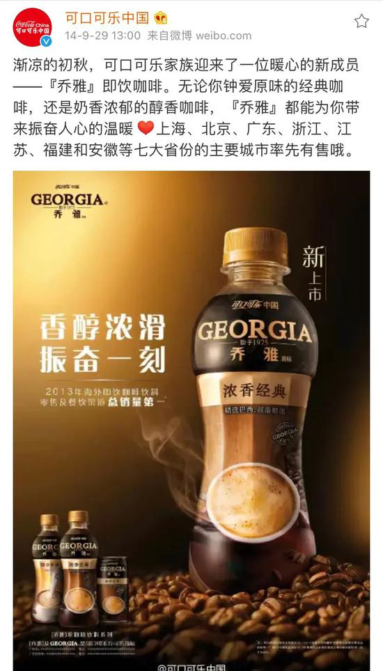 继6年前推出“乔雅”后,可口可乐将在中国市场正式推出两款COSTA即饮咖啡产品,而这是可口可乐在2018年以51亿美元收购COSTA后,推出的第一款即饮咖啡。