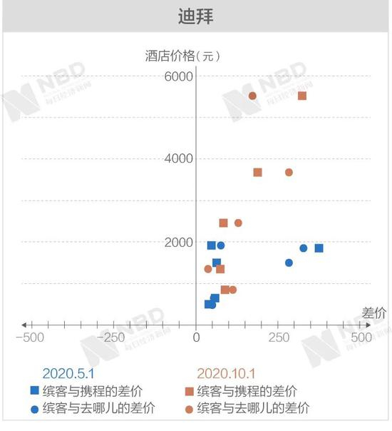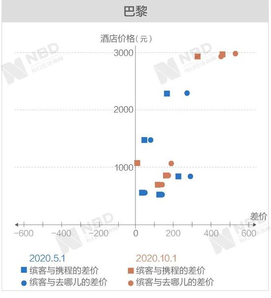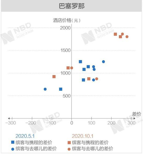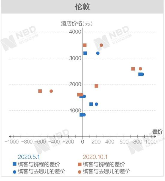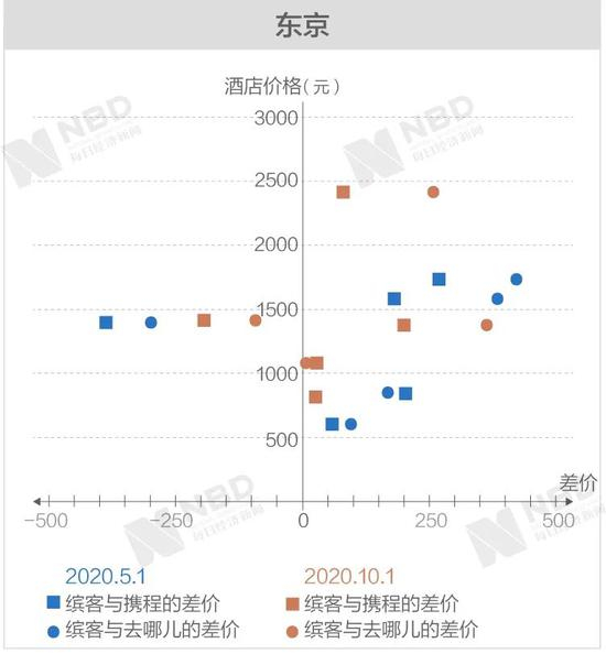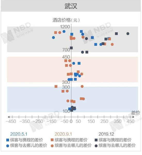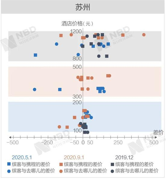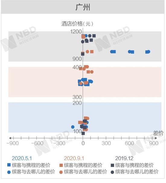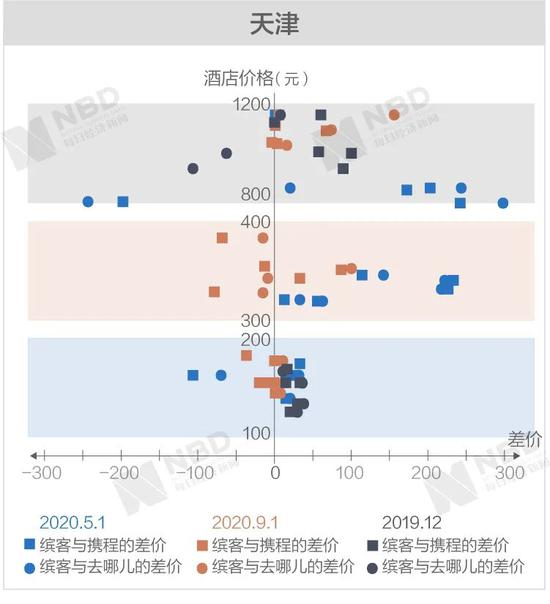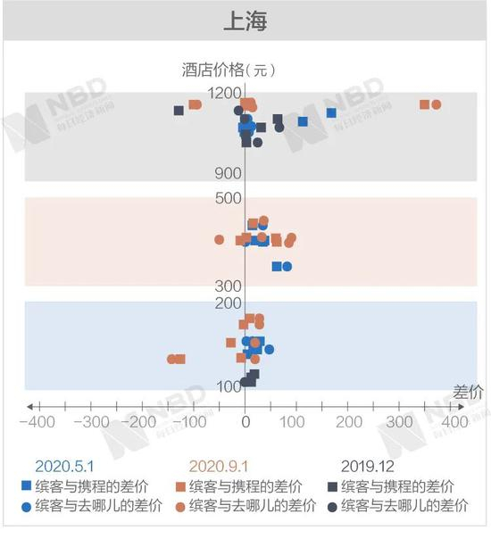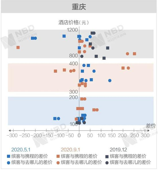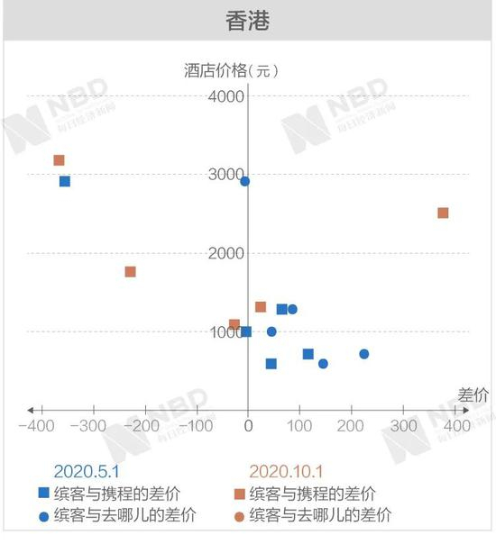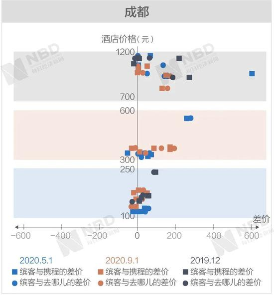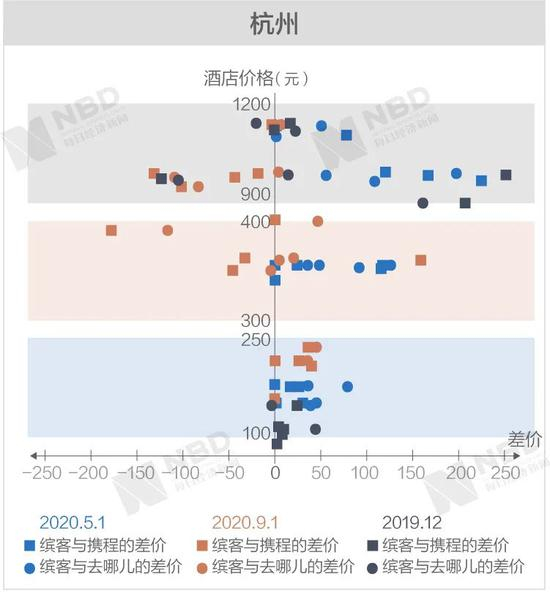 《每日经济新闻》记者经过进一步梳理后发现,缤客与携程和去哪儿差价两端的极值基本上从高价区间产生。
