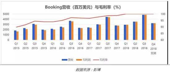 高订单率与高佣金造就了缤客的高利润率。根据彭博数据,2015年以来,缤客的毛利率一直高达90%,2017年到2018年更是接近100%。