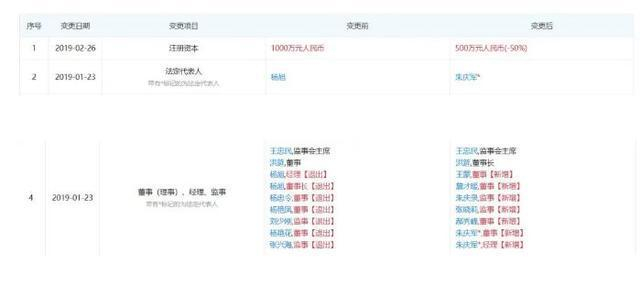 根据天眼查数据,2019年1月23日,佳明佳发生工商变更,减少注册资本,前股东兼法人、董事长、经理杨旭退出,同时朱庆军加入并任经理及法人,洪筵任董事长。