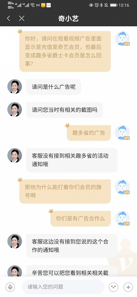 而爱奇艺的官方客服则直接表示并未与趣多省有此类官方合作,如果需要退款,需要找第三方的客服操作。