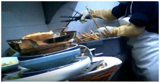 后厨员工食用客人菜品