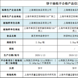 上海靖浩食品三款饼干检出饼干产品禁用防腐剂