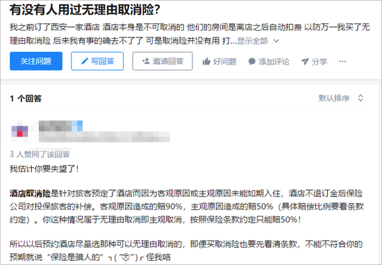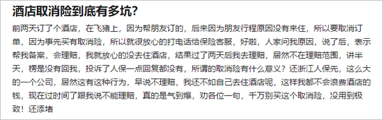 业内人士表示,取消险这个概念并不是能帮助取消订单,而是消费者在购买之后由于突发状况导致未入住的情况下,可以要求进行理赔处理,减少损失。