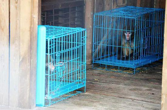 ▲铁笼中的猕猴。李洪涛/摄