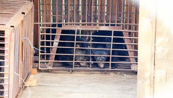 ▲被囚禁在铁笼中的黑熊幼崽。李洪涛/摄
