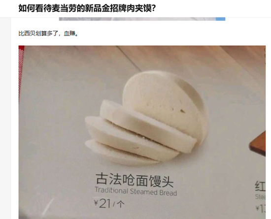 那么问题来了,如果非选择一个不可,你是愿意买麦当劳的金招牌肉夹馍,还是西贝的古法呛面馒头呢?