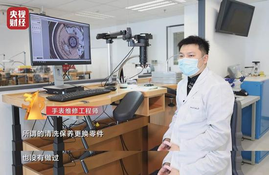 维修人员不允许拿走旧件的行为让人心生疑惑,这个手表是怎么维修的呢?专业人员对手表进行了检测。手表维修工程师告诉记者:“这台表机芯并未拆解过,所谓的清洗保养、更换零件也没有做过。”