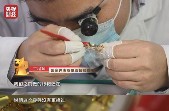 国家钟表质量监督检验中心工程师说:“现在我们打开手表的后盖,我们之前做的标记还在,说明这个零件没有更换过。”
