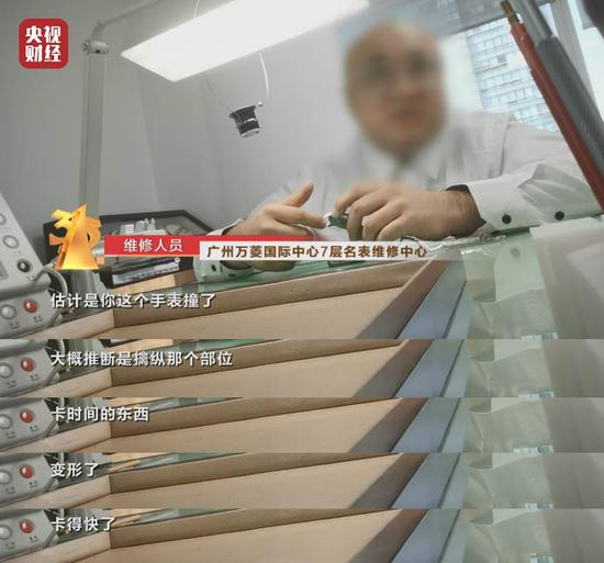 维修人员表示:“估计是你这个手表撞了,大概推断是擒纵那个部位,卡时间的东西变形了,卡得快了。”