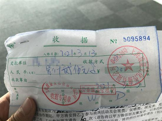 △刘先生提供的收据显示,这笔费用被称之为“劳务服务管理费”。