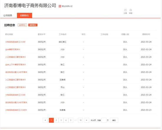 △仅“济南春博”一家,就足足发布了16页兼职招工信息。