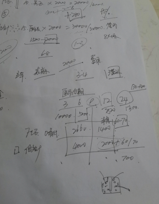 工作人员列出的植发价格和分期付明细。