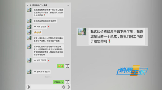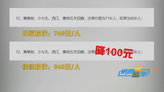 同样的行程,费用直接降了一半,只收费740元,并且品质不变,这让记者极为心动。然而,当记者把这个价格告诉导游佳佳后,佳佳立刻表示,可以帮记者向公司申请特惠价,并且很快给出了回复。